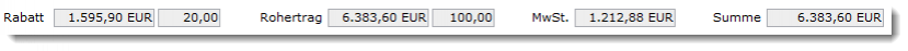 Unterhalb der Positionsliste finden Sie eine Reihe von Feldern, in denen verschiedene Gesamtsummen aus den betreffenden Datensätzen angezeigt werden. Diese Summen werden dann berechnet,