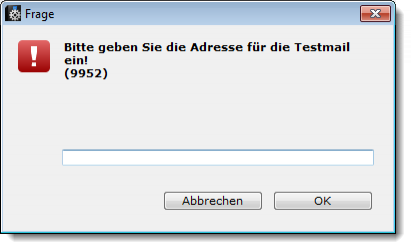 Klicken Sie in dem Dialog auf „Ja“, dann erscheint ein Dialog, in welchen Sie die E-Mail Adresse des Empfängers der Test-E-Mail eingeben können.