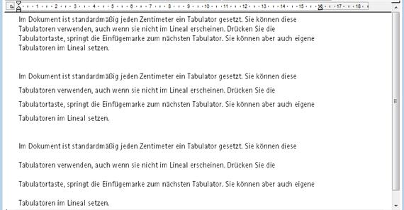 Mit 4D Write können Sie den Zeilenabstand im Absatz bestimmen. Nachfolgende Darstellung zeigt einen Absatz mit dreizeiligem, zweizeiligem Abstand und einen mit einzeiligem Abstand.