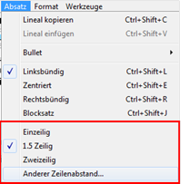 Im Menü „Absatz“ können Sie auch noch einen anderen Zeilenabstand wählen.