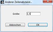 Für einen anderen Zeilenabstand, wählen Sie im Menü „Absatz“ den Befehl „Anderer Zeilenabstand“. Auf dem Bildschirm erscheint folgendes Dialogfenster: