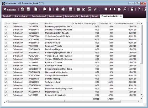 An dieser Stelle soll dies an einem Beispiel kurz aufgezeigt werden: Stellen Sie sich vor, Sie möchten sehen, welchen Projekten ein Mitarbeiter zugeordnet ist, mit wie vielen Stunden dieser dort verplant ist, wie viele Stunden dieser für das Projekt aufgewendet hat usw.