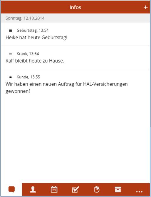 Um Infos anzulegen, einzusehen und zu ändern, betätigen Sie die Schaltfläche „Infos“.