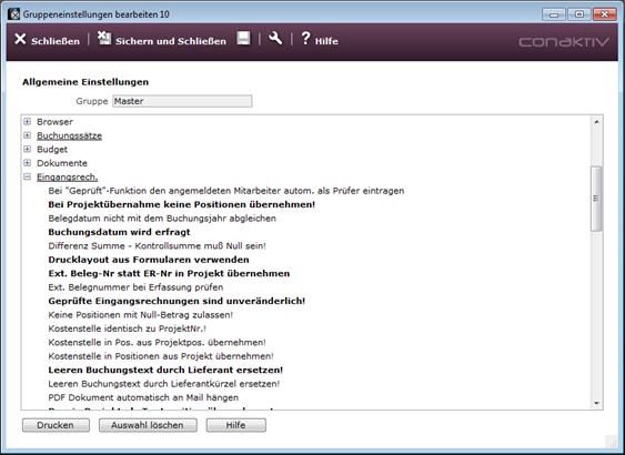 Die allgemeinen Einstellungen dienen der individuellen Anpassung von ConAktiv®. Hier können Sie bestimmte Sonderfunktionen von ConAktiv® aktivieren bzw. deaktivieren.