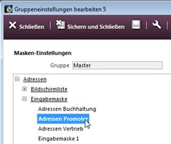 Starten Sie hierzu das Modul „Einstellungen“, markieren einen Benutzer oder eine Benutzergruppe und klicken Sie auf der entsprechenden Seite auf den Knopf „Masken-Einstellungen“.