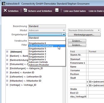 Im List-Editor wählen Sie im PopUp-Menü „Eingabelayout“ das erstellte Eingabelayout anhand der von Ihnen vergebenen Bezeichnung aus.