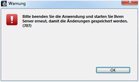 Bestätigen Sie die Meldung, schließen Sie das Modul „Systemparameter“ und beenden Sie Ihren ConAktiv®-Client. Begeben Sie sich dann an Ihren ConAktiv®-Server, beenden diesen und starten diesen gleich wieder.