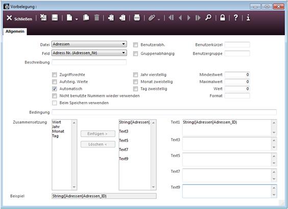 Dieses Feld muss mit einer eindeutigen Nummer versehen werden. Diese eindeutige Nummer muss bei Adressneuanlage über eine Vorbelegung erzeugt werden.