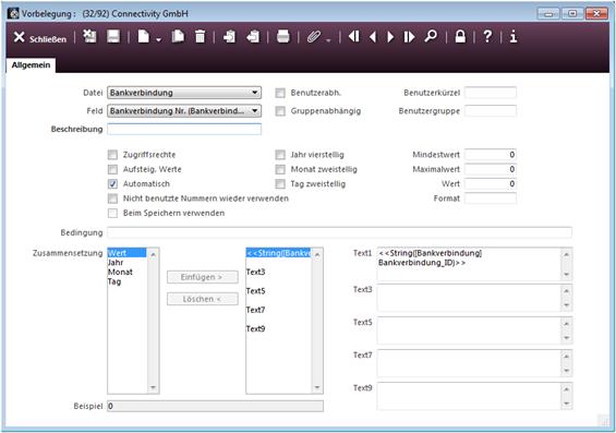 Dieses Feld muss mit einer eindeutigen Nummer versehen werden. Diese eindeutige Nummer muss bei Neuanlage einer Bankverbindung über eine Vorbelegung erzeugt werden.