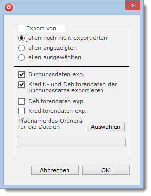 Starten Sie das Modul „Buchungssätze“, so gelangen Sie in die Bildschirmliste des Moduls. Führen Sie aus dem Menü „Spezial“ der Bedienleiste die Funktion „Lexware“ aus, so öffnet sich ein Dialog, in welchem Sie festlegen können, welche Buchhaltungsdaten exportiert werden sollen.