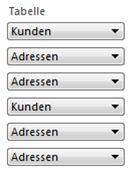 Die Tabelle eines anderen Moduls stellen Sie über das jeweilige PopUp-Menü „Tabelle“ einer Suchzeile ein. In dem PopUp-Menü werden Ihnen alle Module angeboten, die mit dem aktiven Modul in Verbindung stehen.