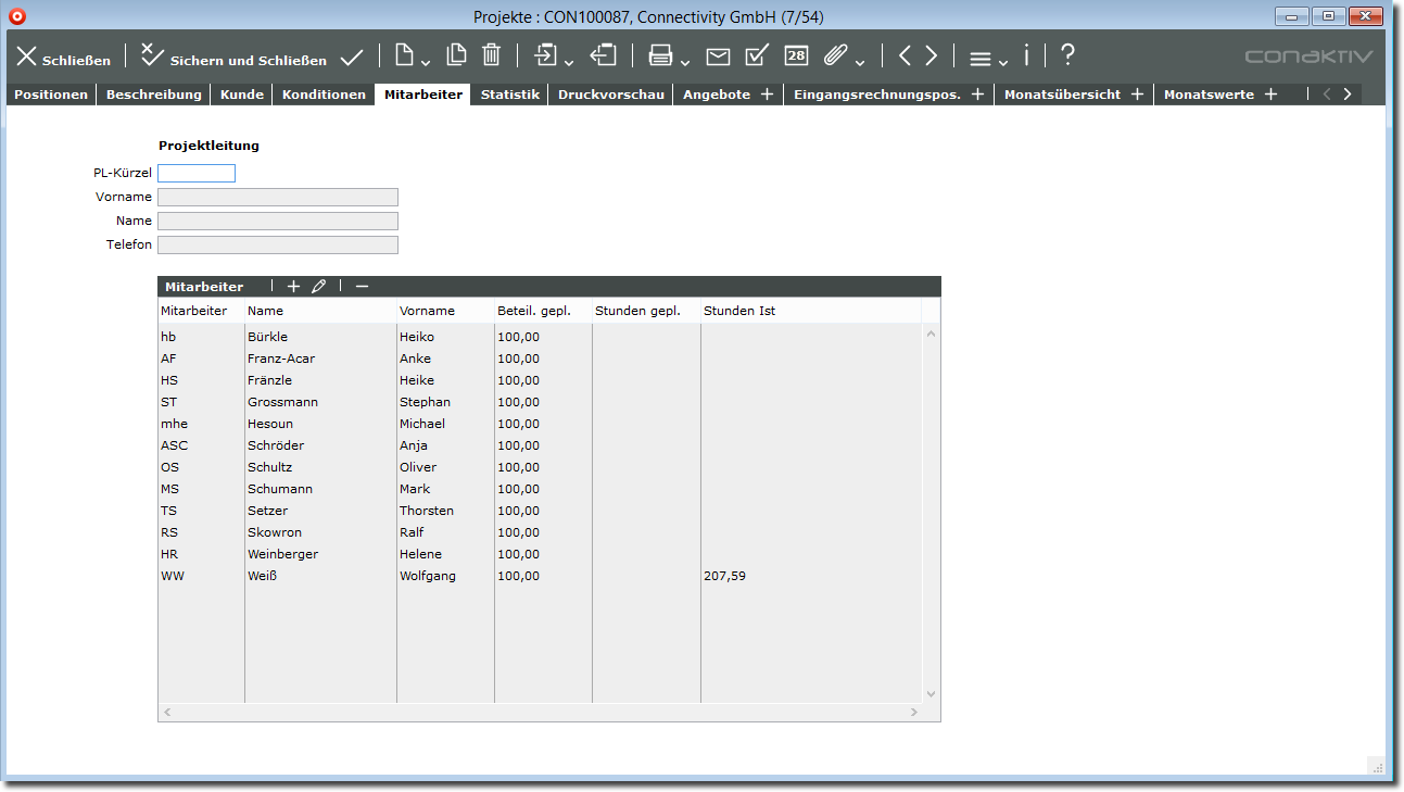 Speichern Sie den Mitarbeiter und verfahren Sie ebenso mit den verbleibenden Mitarbeitern.