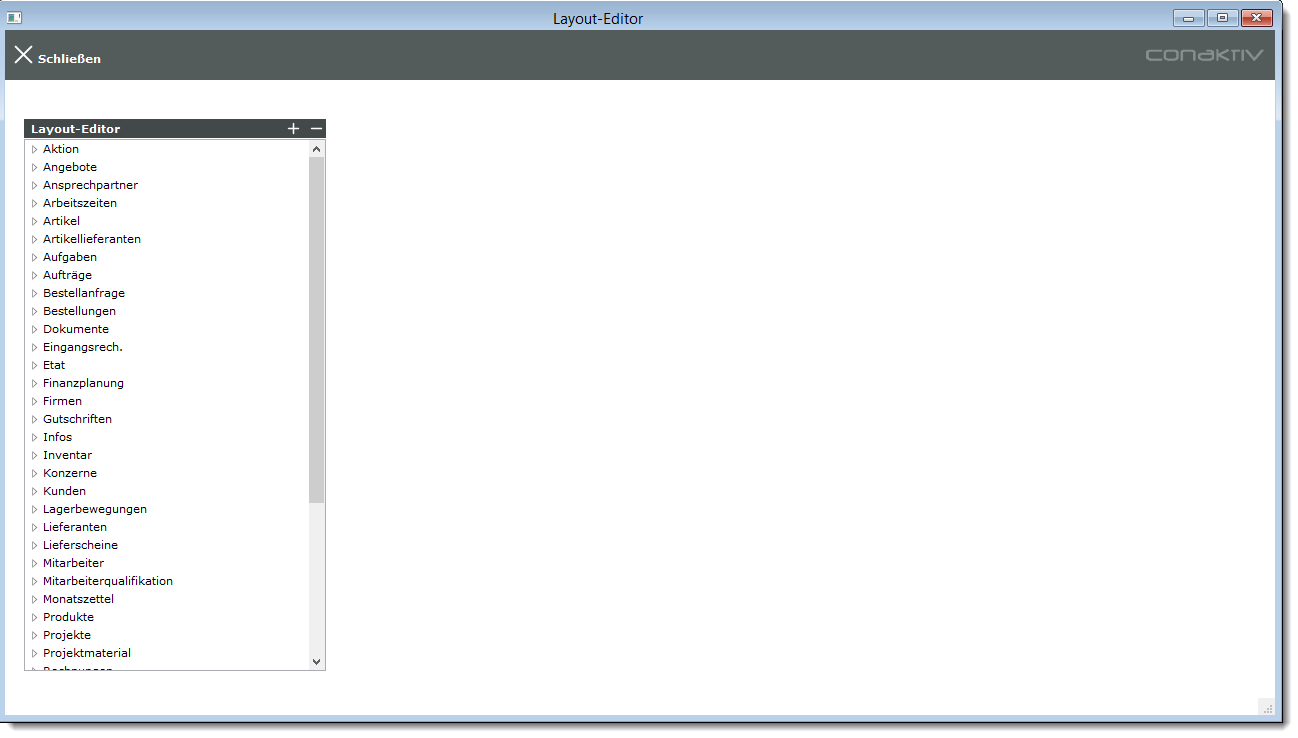 Klicken Sie auf einen Layout-Eintrag, der sich unter dem Eintrag „Layout-Editor“ befindet, wird das entsprechende Layout im Layout-Editor geöffnet.