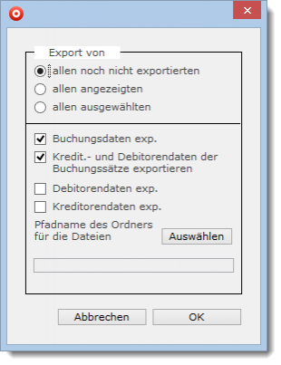 Starten Sie das Modul „Buchungssätze“, so gelangen Sie in die Bildschirmliste des Moduls. Führen Sie aus dem Menü „Spezial“ der Bedienleiste die Funktion „KHK“ aus, so öffnet sich ein Dialog, in welchem Sie festlegen können, welche Buchhaltungsdaten exportiert werden sollen.
