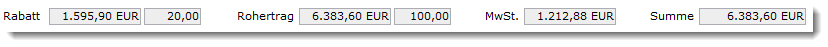 Unterhalb der Positionsliste finden Sie eine Reihe von Feldern, in denen verschiedene Gesamtsummen aus den betreffenden Datensätzen angezeigt werden. Diese Summen werden dann berechnet,