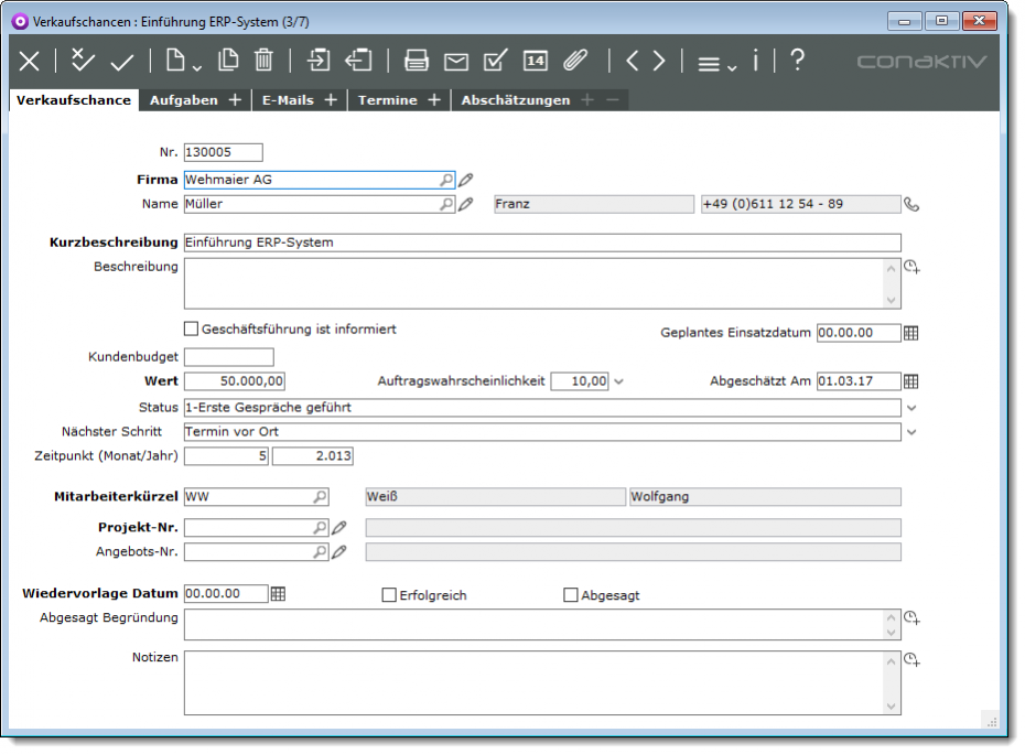Feldbeschreibung, Registerkarte „Verkaufschance“