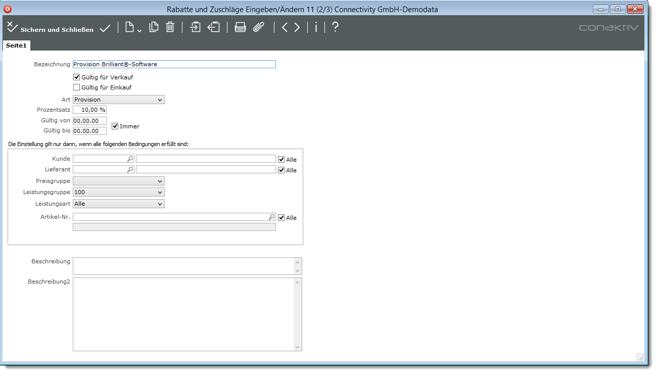 Geben Sie zuerst im Feld „Bezeichnung“ der Rabatt-/Zuschlagsdefinition eine kurze Bezeichnung.