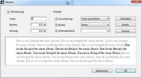 Im Dialogfenster „Absatz“ können Sie verschiedene Einstellungen für einen Absatz definieren: