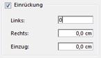 Um die Ränder zu definieren, markieren Sie das Ankreuzfeld „Einrückung“. Das aktiviert die darunter liegenden Eingabebereiche. Vergeben Sie Werte für linken und rechten Rand sowie den Einzug der ersten Zeile.