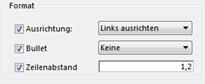 Hier definieren Sie die Ausrichtung, Bullets und den Zeilenabstand: