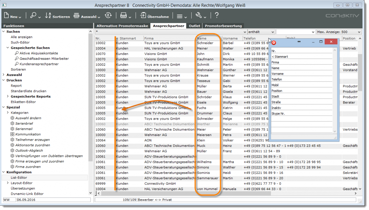 Schließen Sie dann das Fenster über das Schließkreuz. Die neue Spaltenreihenfolge wird in die Bildschirmliste übernommen.