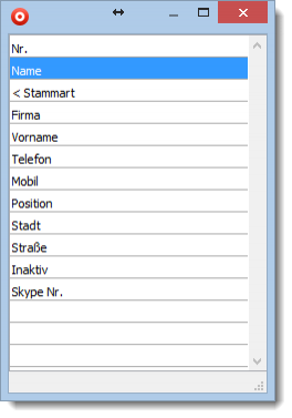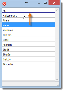 Möchten Sie in einer Bildschirmliste eine der dargestellten Spalten verschieben, so gehen Sie wie folgt vor: Klicken Sie mit der rechten Maustaste auf einen beliebigen Spaltenkopf. Es öffnet sich ein Fenster, in dem alle Spalten (in die Vertikale transponiert) in der aktuellen Reihenfolge angezeigt werden.