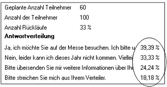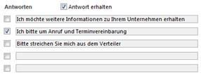 Nehmen Sie an, Sie haben eine Mailingaktion zu einer Messeveranstaltung gestartet. An die Mailingempfänger haben Sie unter anderem auch eine Antwortkarte versandt. Auf dieser Antwortkarte haben Sie dem Empfänger vier Möglichkeiten gegeben, auf das Mailing zu reagieren.