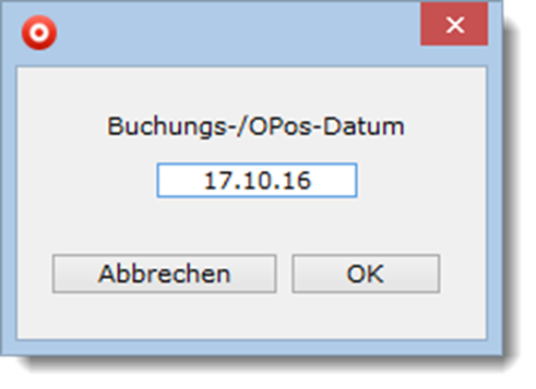 Üblicherweise wird, wenn Sie eine Eingangsrechnung buchen oder stornieren, das aktuelle Tagesdatum als Buchungsdatum in den Buchungssatz und als Offene-Posten-Datum in den offenen Posten übernommen. Möchten Sie dieses Buchungsdatum manuell erfassen, so können Sie im Modul „Einstellungen“ die Einstellung „Buchungsdatum wird erfragt“ aktivieren. Dann erscheint, sobald Sie eine Eingangsrechnung buchen oder stornieren, der folgende Dialog: