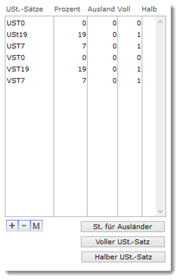 Markieren Sie einen Umsatzsteuersatz und klicken Sie auf den Knopf „Ändern“. Es öffnet sich ein Fenster, in welchem Sie den Steuersatz bearbeiten können: