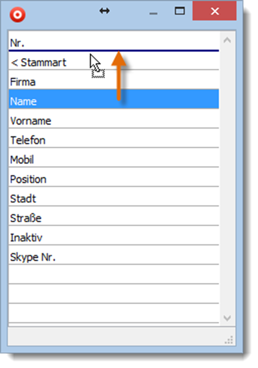 Möchten Sie in einer Bildschirmliste eine der dargestellten Spalten verschieben, so gehen Sie wie folgt vor: Klicken Sie mit der rechten Maustaste auf einen beliebigen Spaltenkopf. Es öffnet sich ein Fenster, in dem alle Spalten (in die Vertikale transponiert) in der aktuellen Reihenfolge angezeigt werden.
