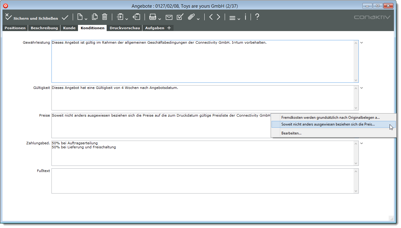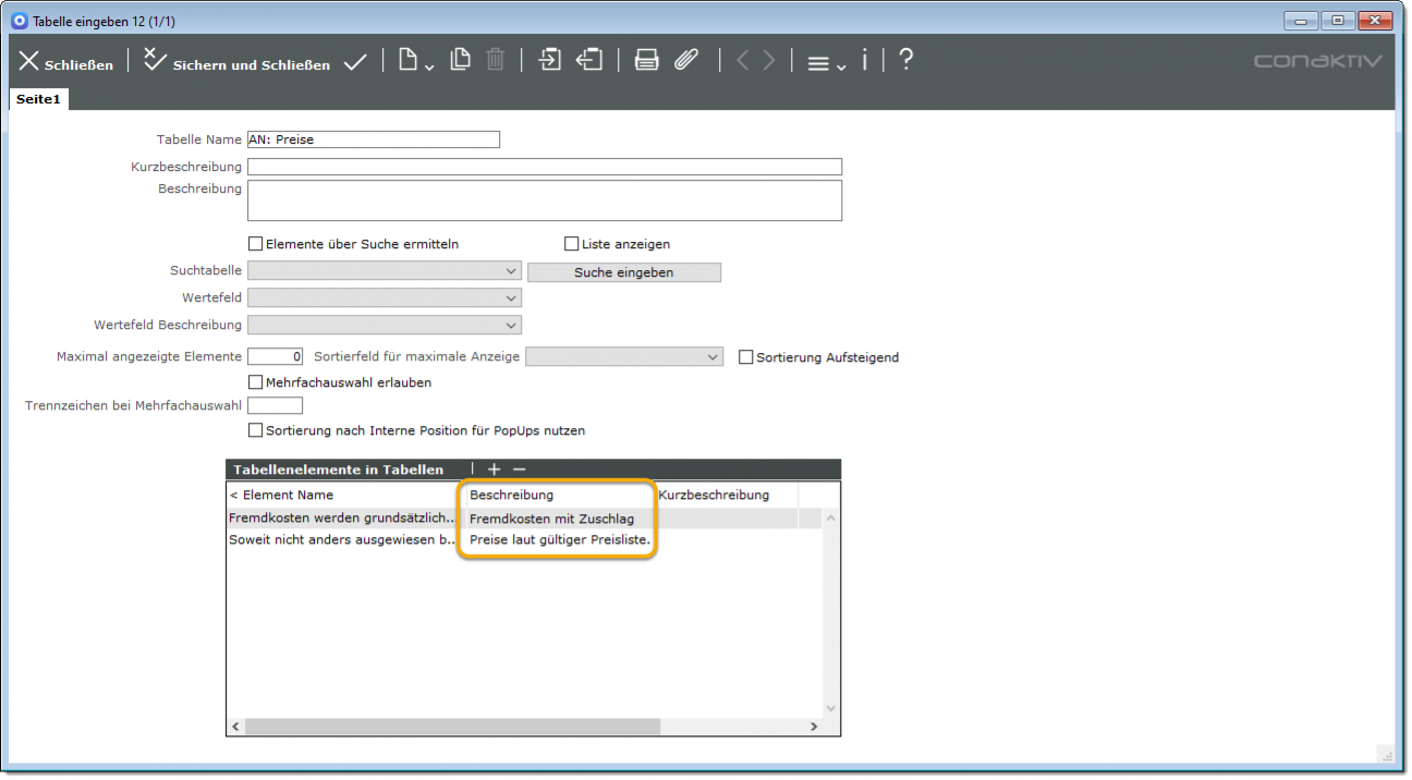 Unter Umständen sind aber einige Ihrer Tabellentexte, d.h. die Texte, die Sie im Feld „Elementname“ hinterlegen, sehr umfangreich, beispielsweise Textblöcke für Standardeinleitungstexte oder Grußformeln.